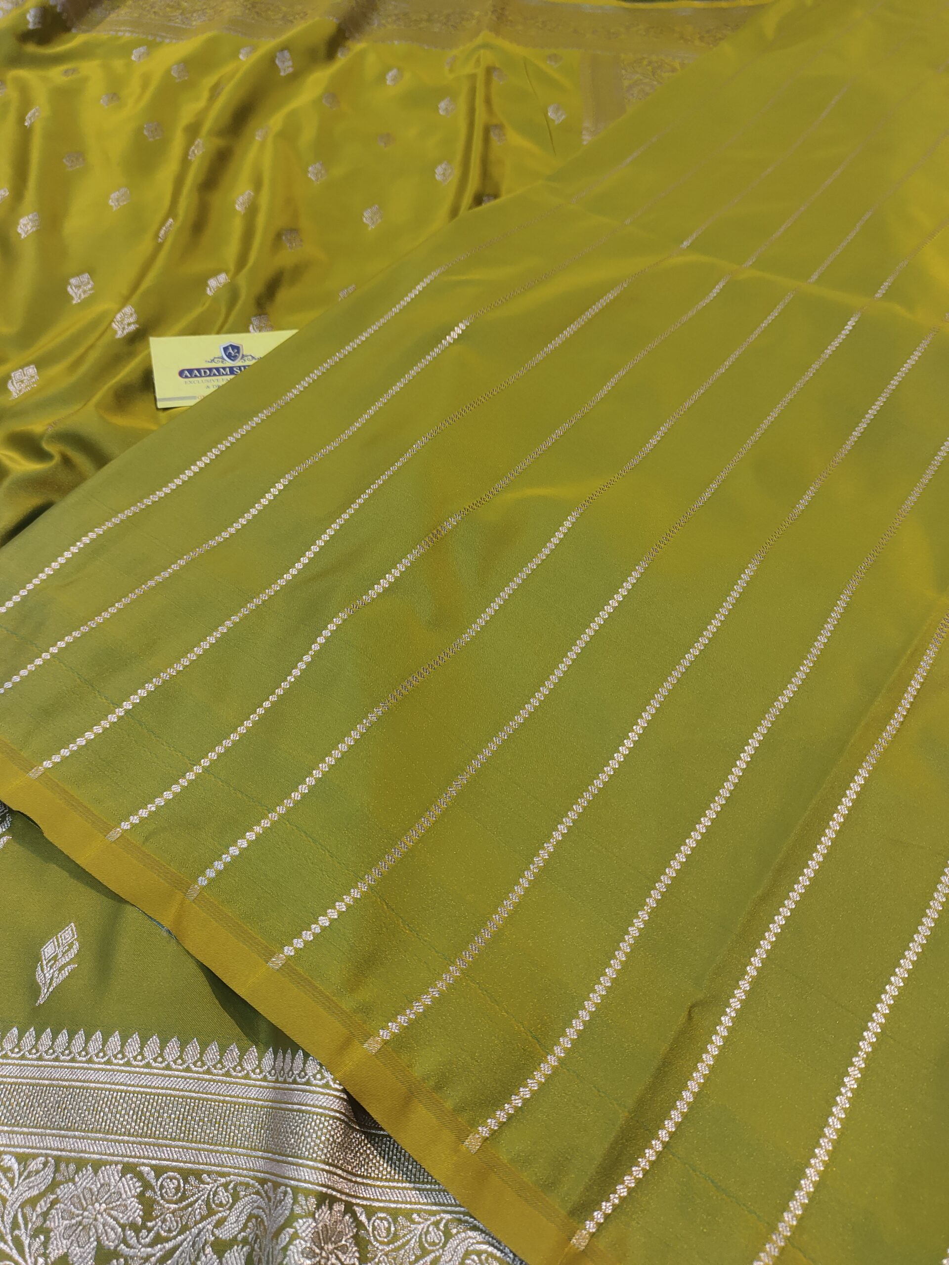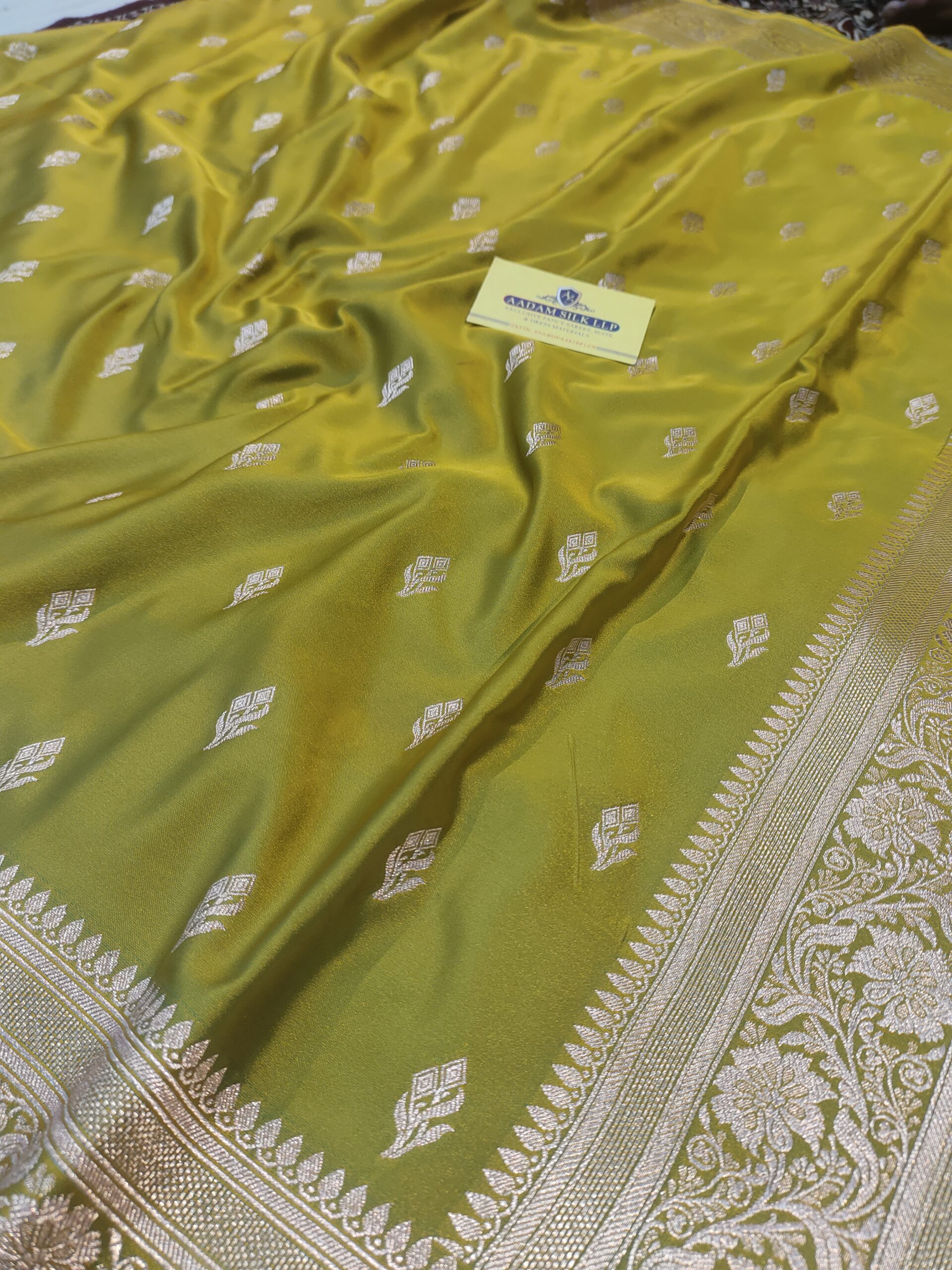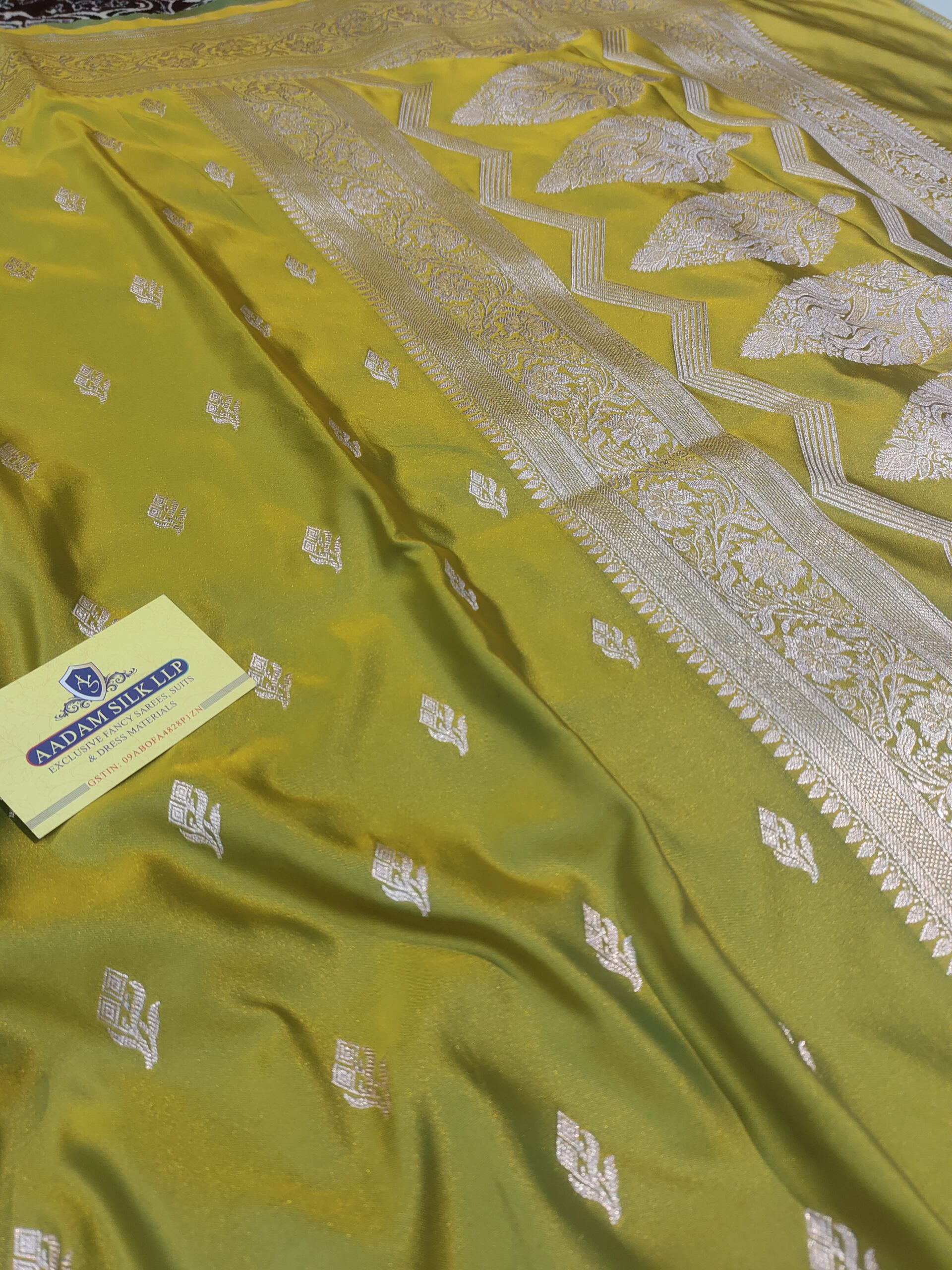 Banarasi Kattan Feel Mashru Silk Booti Lemon Colour Wedding Saree