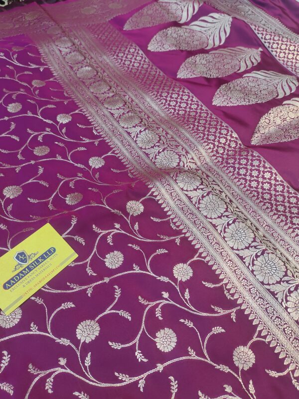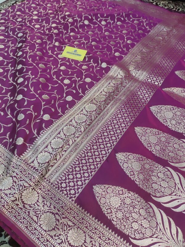 Experience timeless elegance with this exquisite Banarasi saree, crafted to celebrate the rich weaving heritage of Kashi. Made from premium quality fabric, this saree features intricate traditional motifs woven with fine zari that add a graceful royal charm. The smooth texture, rich drape, and detailed craftsmanship make it a perfect choice for weddings, festive occasions, and special celebrations.