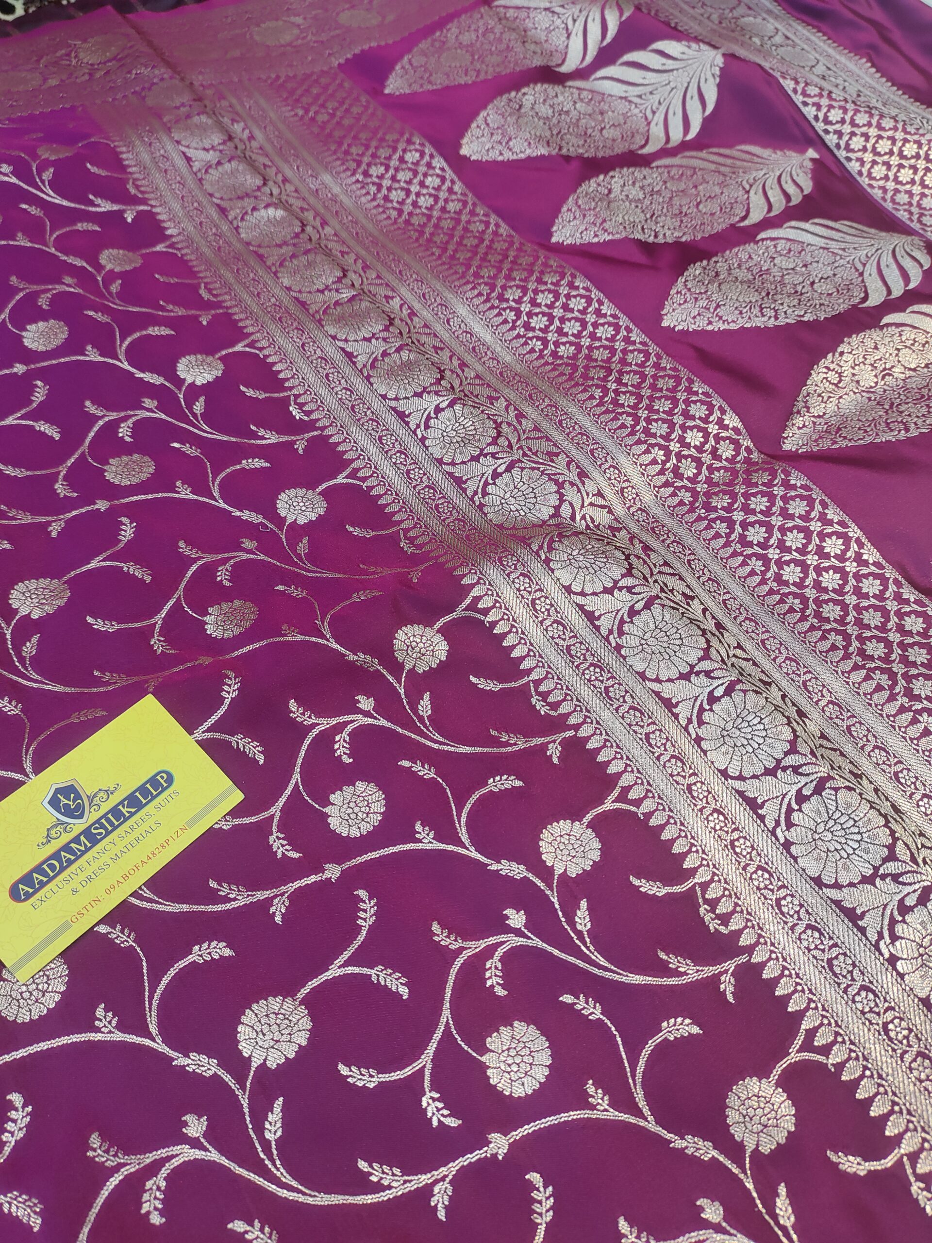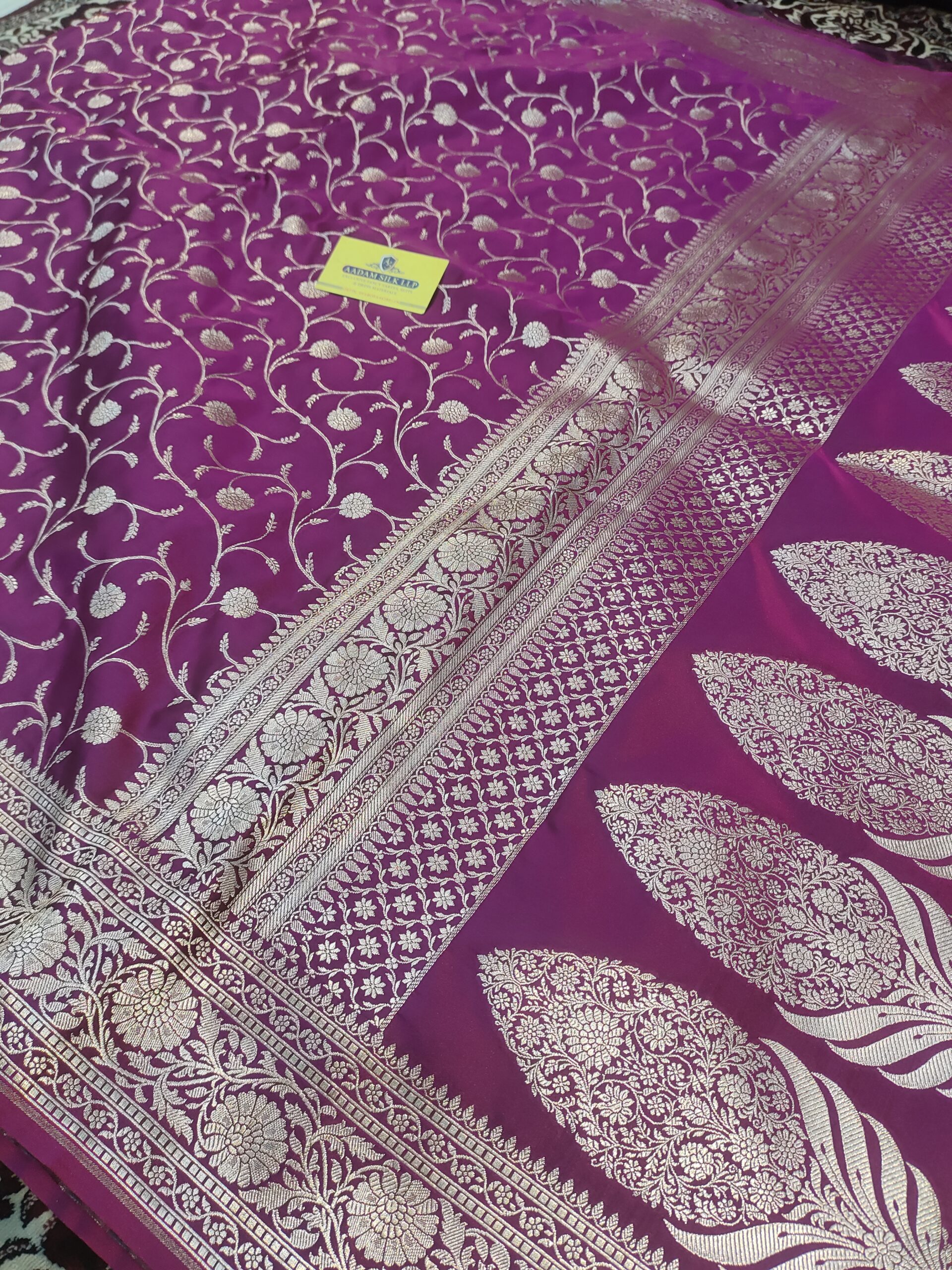 Banarasi Kattan Feel Mashru Silk Halki Jaal Rani Colour Wedding Saree