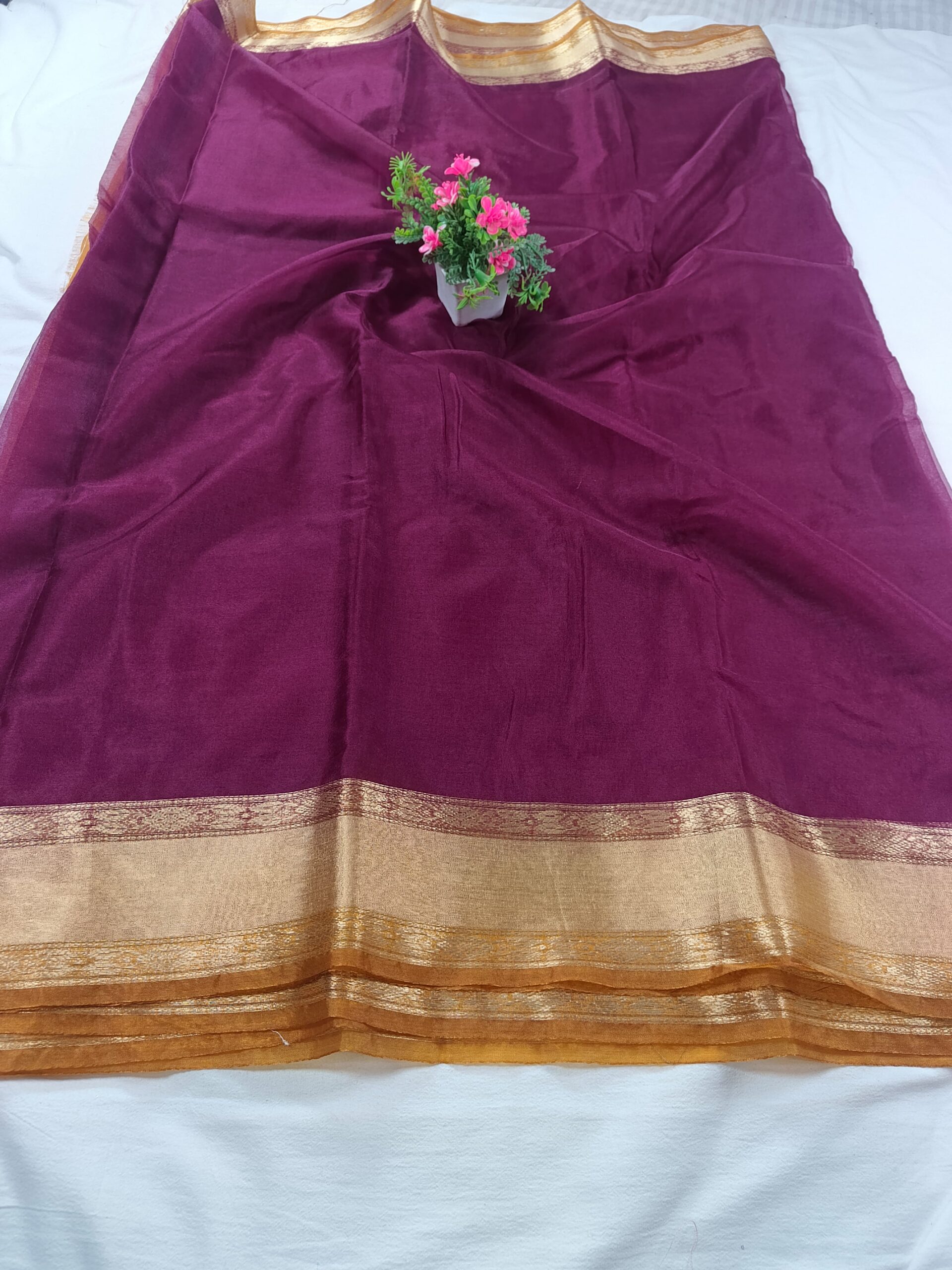 Be the first to review “Banarasi Soft Kora Silk Contrast Border Pallu Saree”