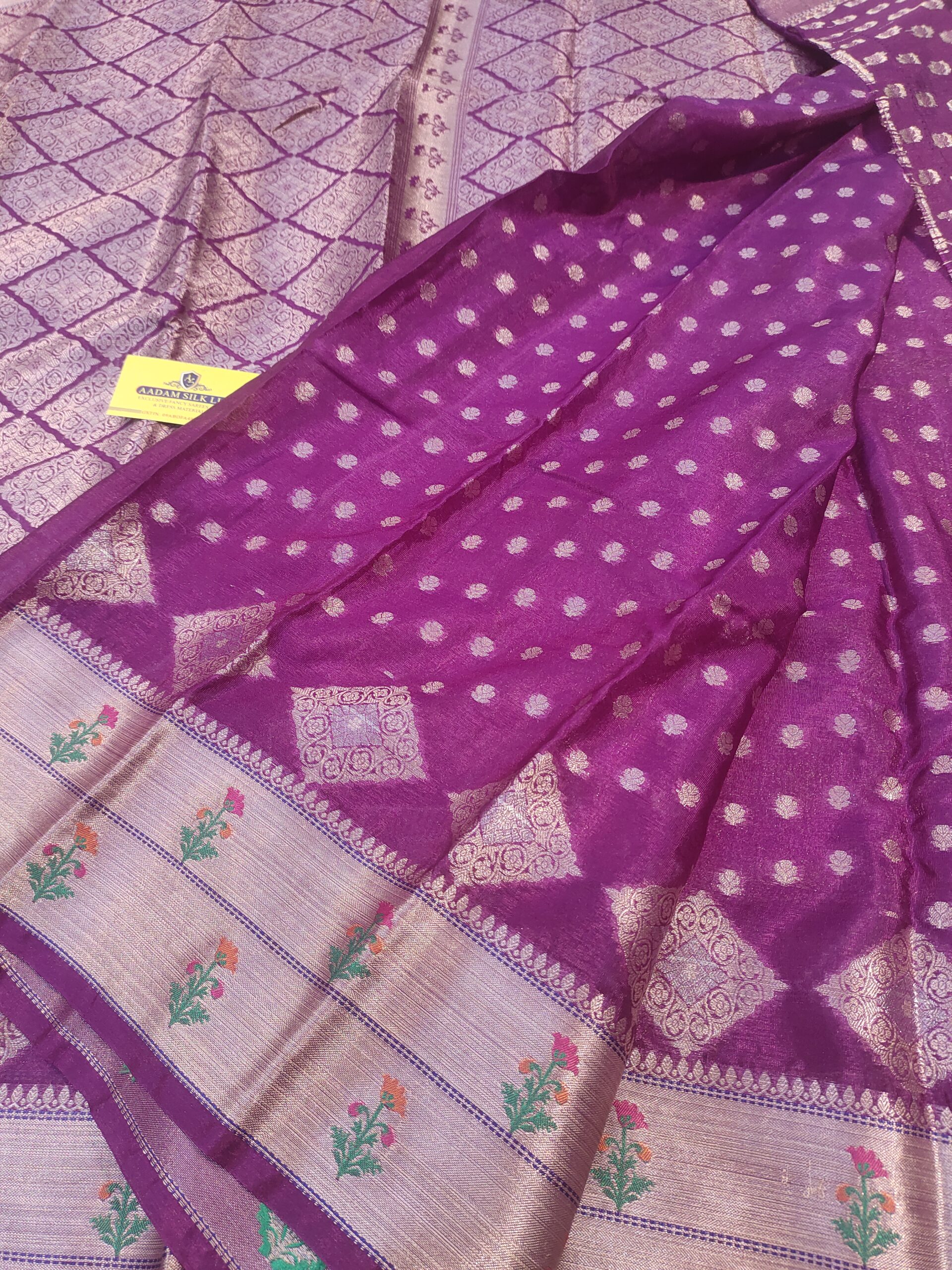 Experience timeless elegance with this exquisite Banarasi saree, crafted to celebrate the rich weaving heritage of Kashi. Made from premium quality fabric, this saree features intricate traditional motifs woven with fine zari that add a graceful royal charm. The smooth texture, rich drape, and detailed craftsmanship make it a perfect choice for weddings, festive occasions, and special celebrations.
