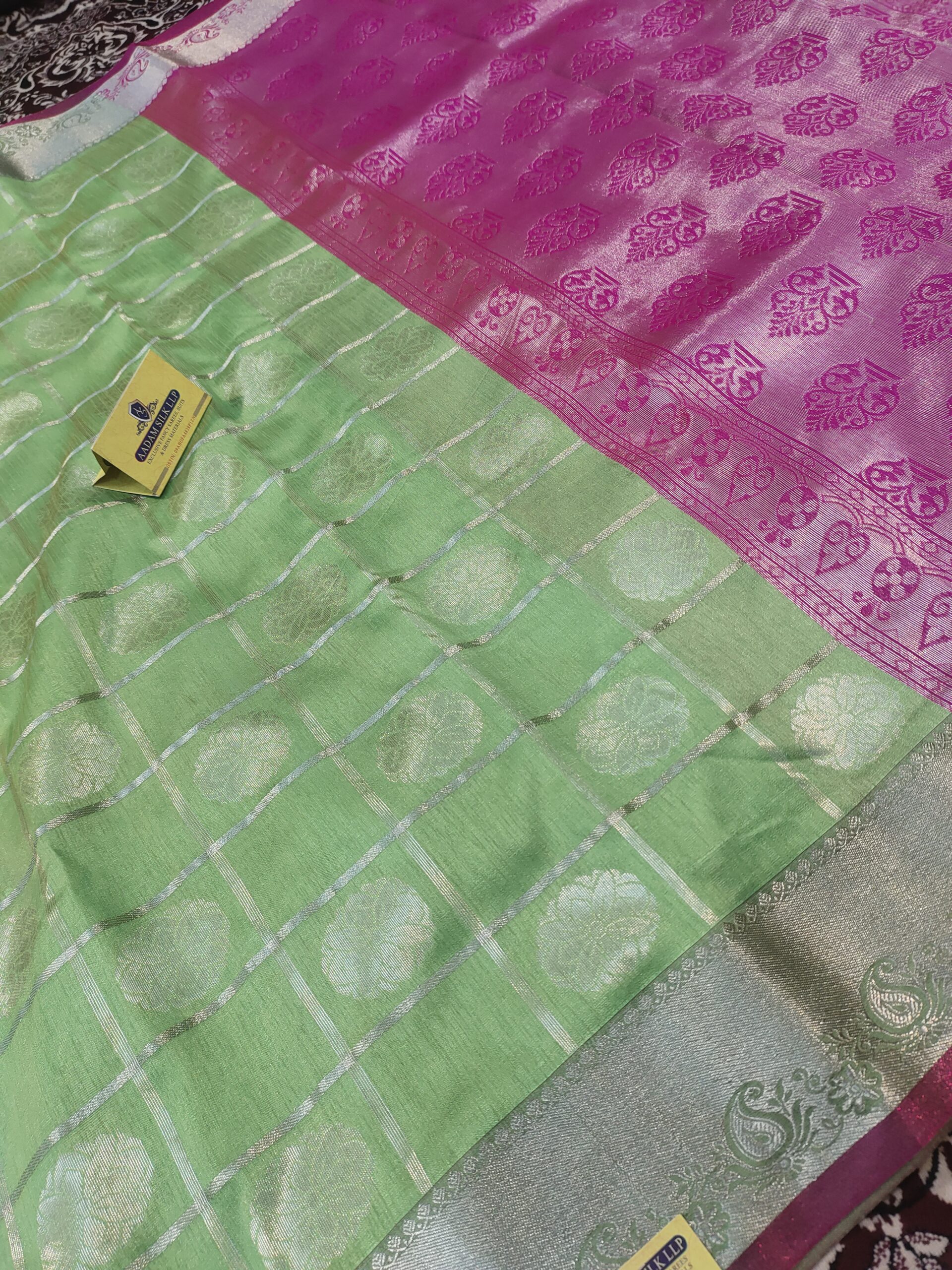 Experience timeless elegance with this exquisite Banarasi saree, crafted to celebrate the rich weaving heritage of Kashi. Made from premium quality fabric, this saree features intricate traditional motifs woven with fine zari that add a graceful royal charm. The smooth texture, rich drape, and detailed craftsmanship make it a perfect choice for weddings, festive occasions, and special celebrations.