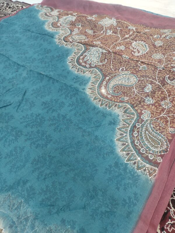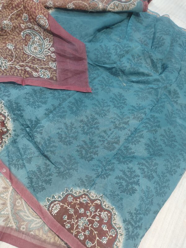 Fancy Floral Big Print and Embroidery Pure Banarasi Cotton SareeFancy Floral Big Print and Embroidery Pure Banarasi Cotton Saree