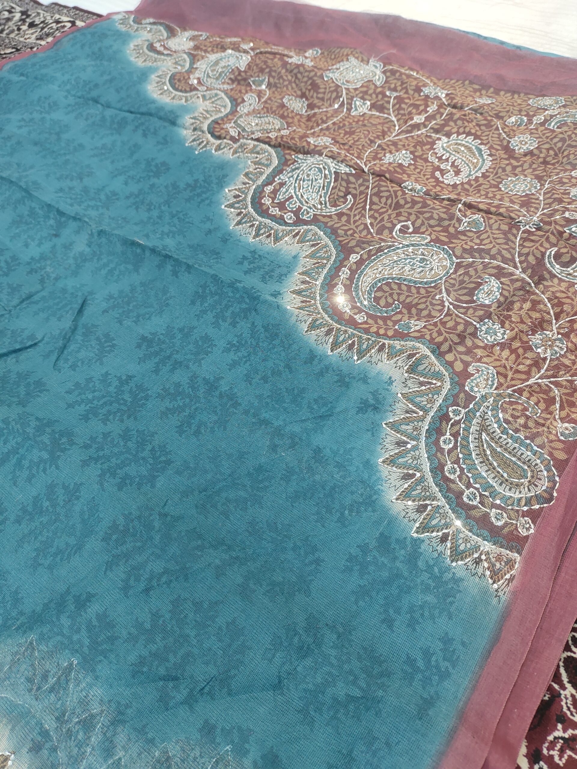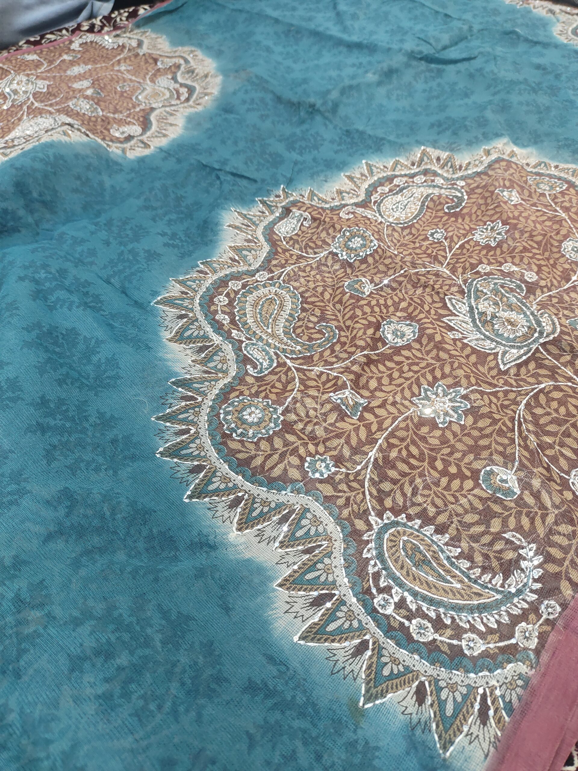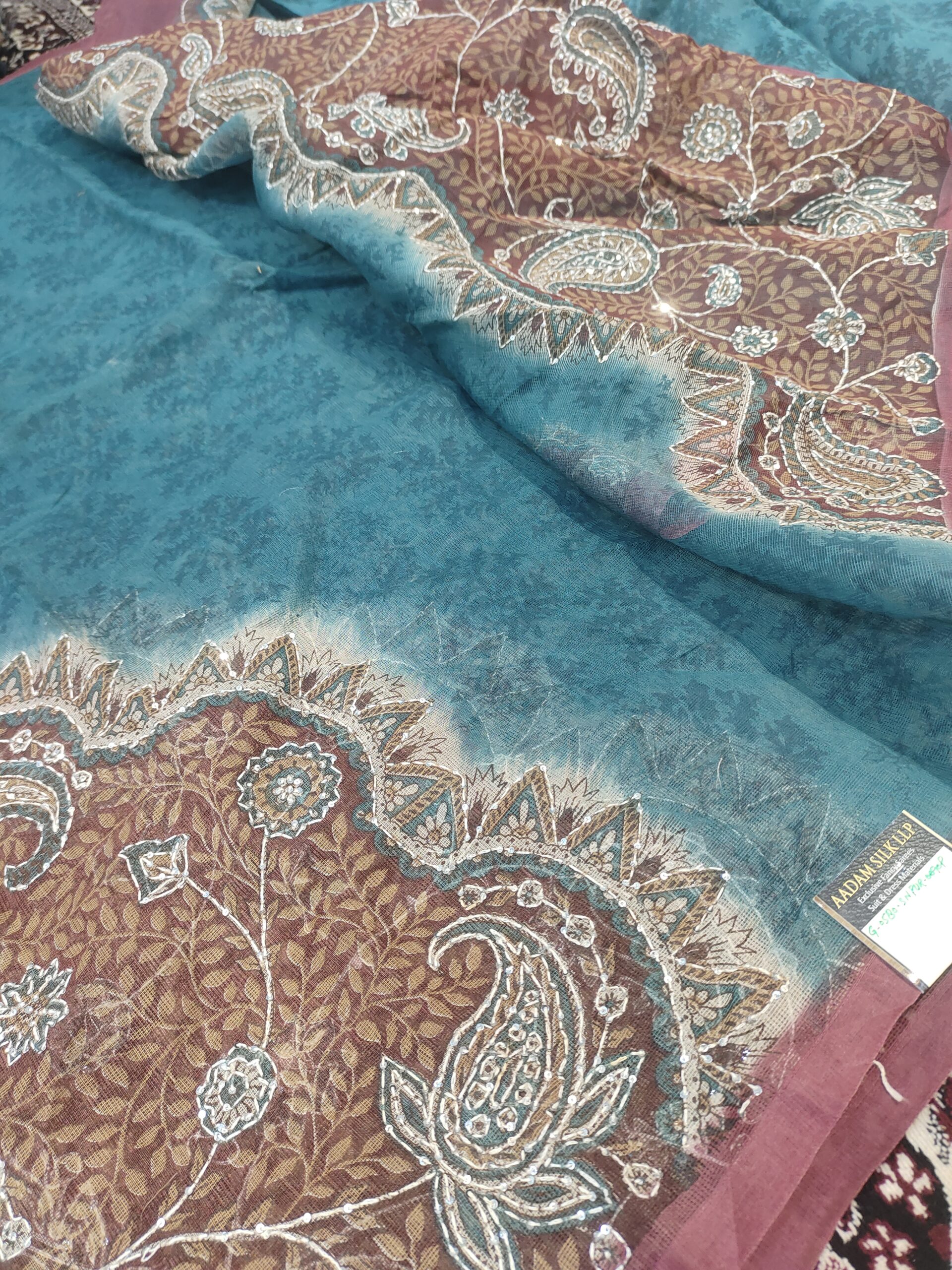 Be the first to review “Fancy Floral Big Print and Embroidery Pure Banarasi Cotton Saree”