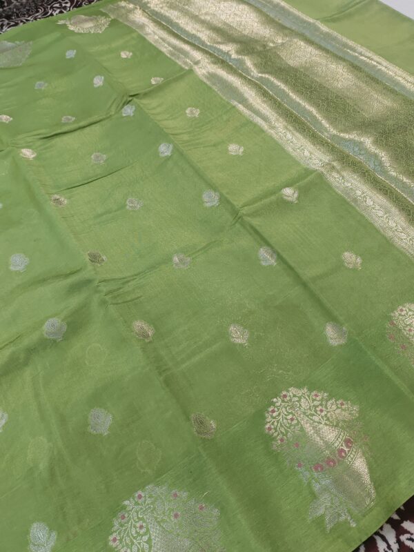 Experience timeless elegance with this exquisite Banarasi saree, crafted to celebrate the rich weaving heritage of Kashi. Made from premium quality fabric, this saree features intricate traditional motifs woven with fine zari that add a graceful royal charm. The smooth texture, rich drape, and detailed craftsmanship make it a perfect choice for weddings, festive occasions, and special celebrations.