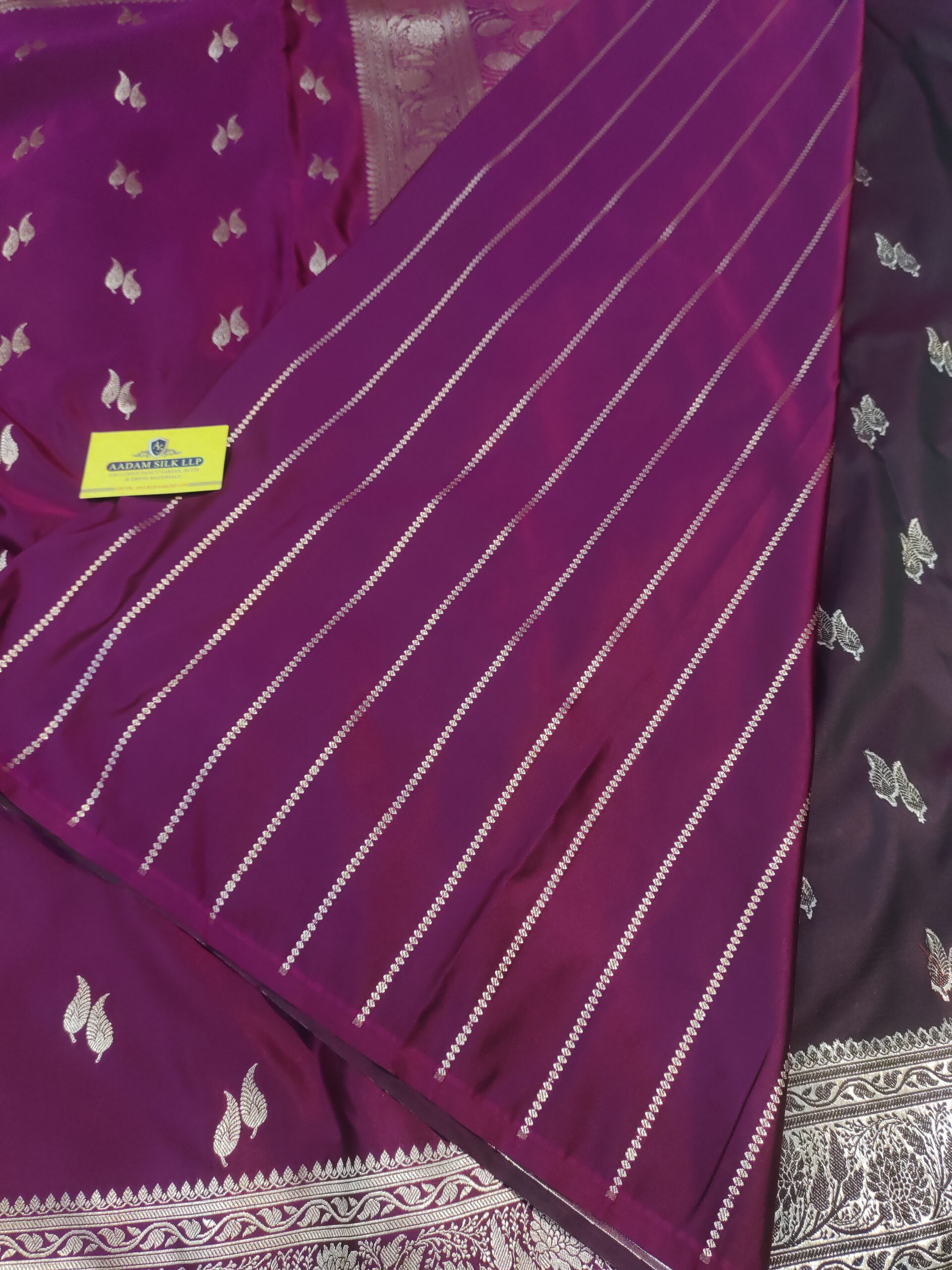 Mashru Silk Couple Booti Wine Colour Wedding SareeMashru Silk Couple Booti Wine Colour Wedding Saree