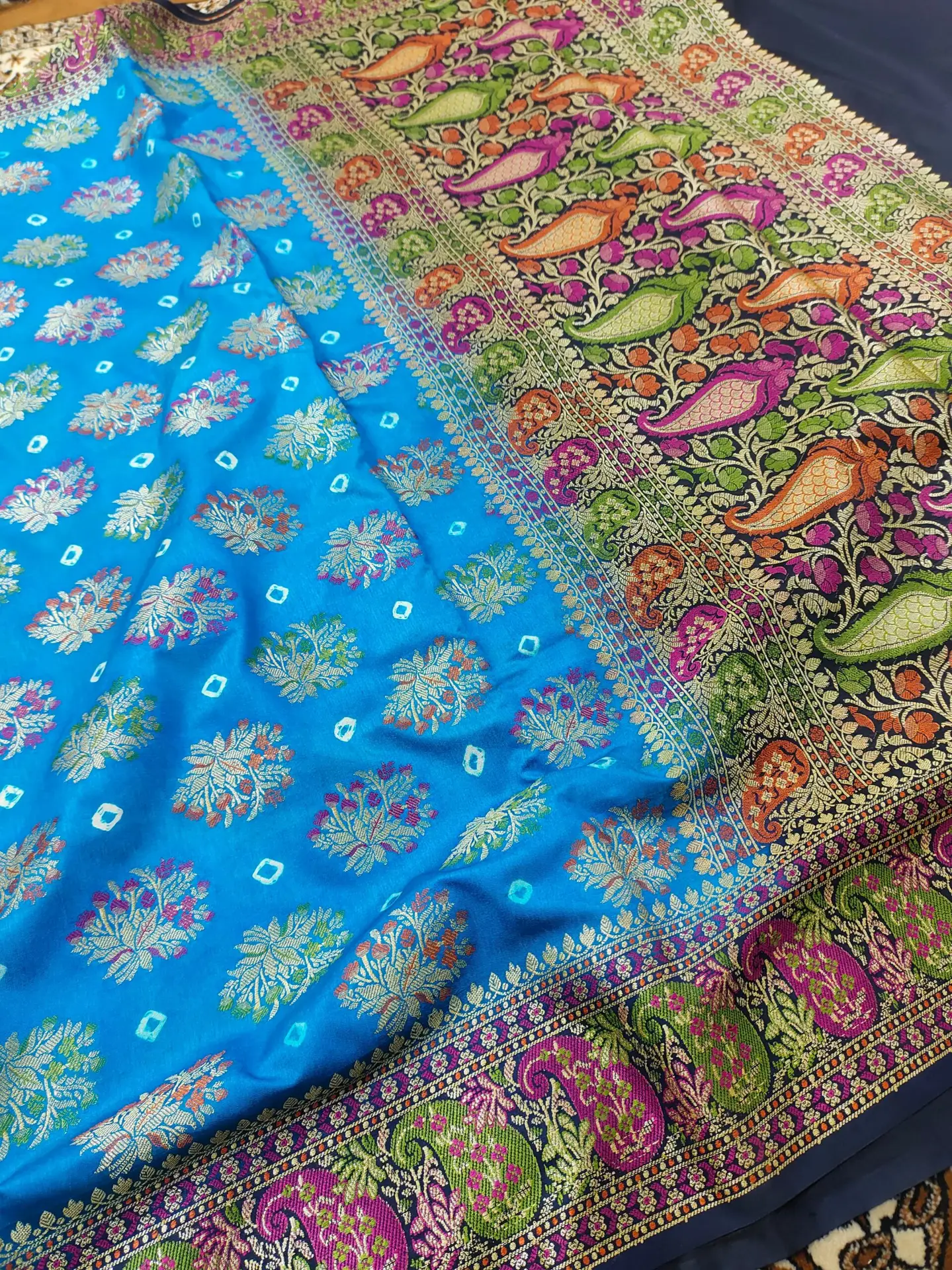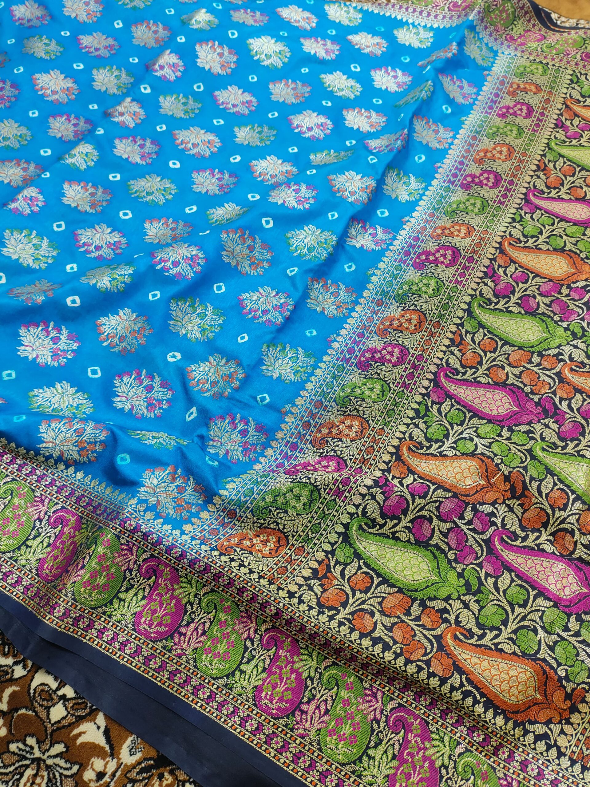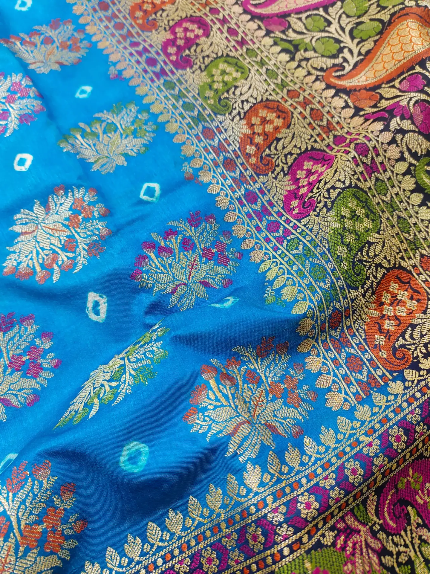 Design: Traditional woven Boota work with Bandhani Dye