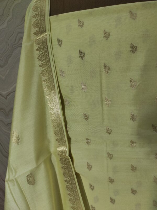 Pure Chinya Silk Zari Booti Banarasi Pista Colour SuitsPure Chinya Silk Zari Booti Banarasi Pista Colour Suits