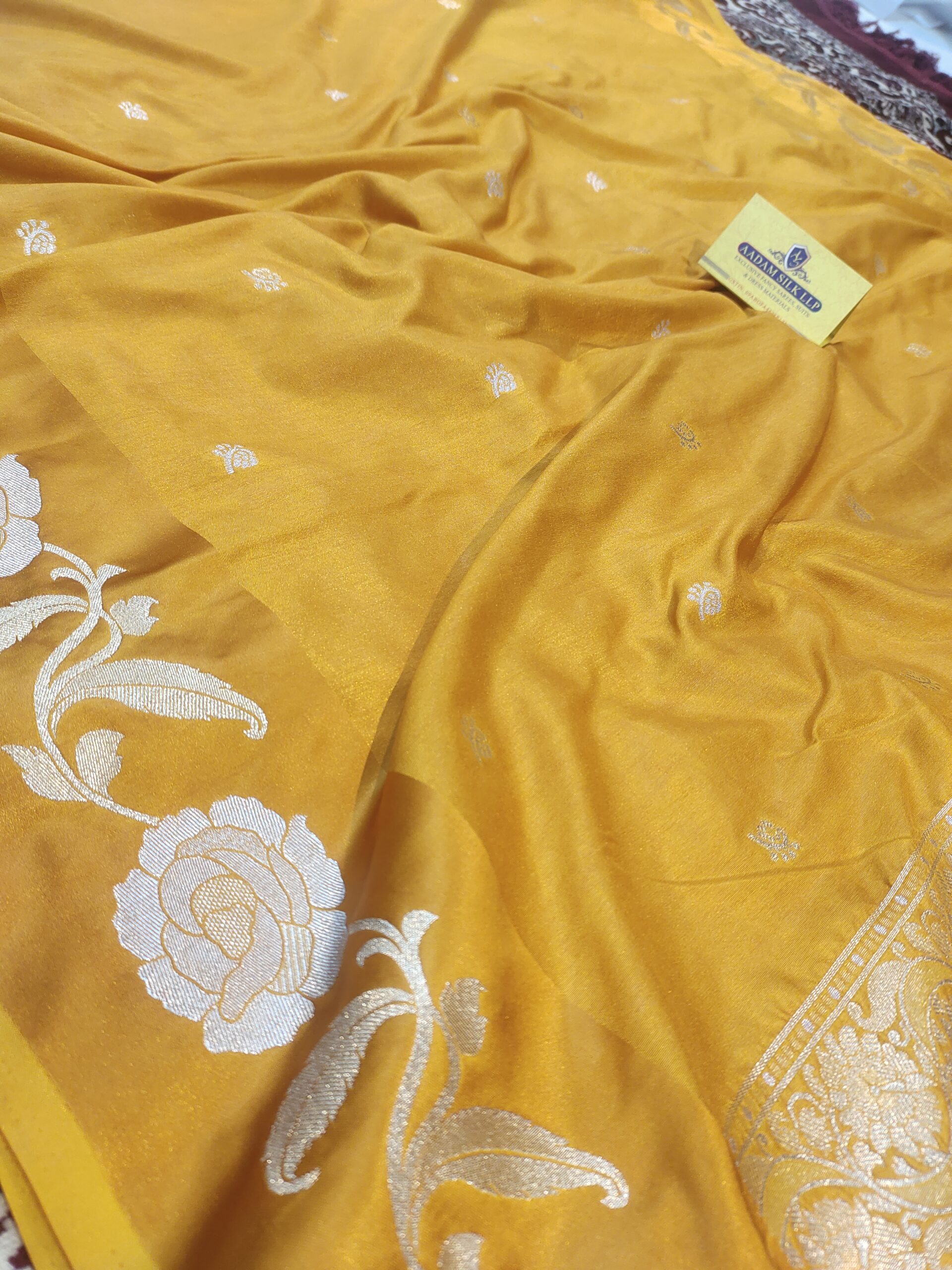 Raw Mango Soft Silk Saree In Sona Rupa Floral Designer Border And Booti
