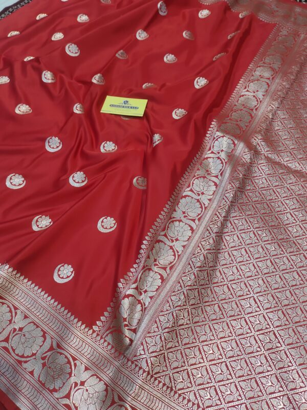 Experience timeless elegance with this exquisite Banarasi saree, crafted to celebrate the rich weaving heritage of Kashi. Made from premium quality fabric, this saree features intricate traditional motifs woven with fine zari that add a graceful royal charm. The smooth texture, rich drape, and detailed craftsmanship make it a perfect choice for weddings, festive occasions, and special celebrations.