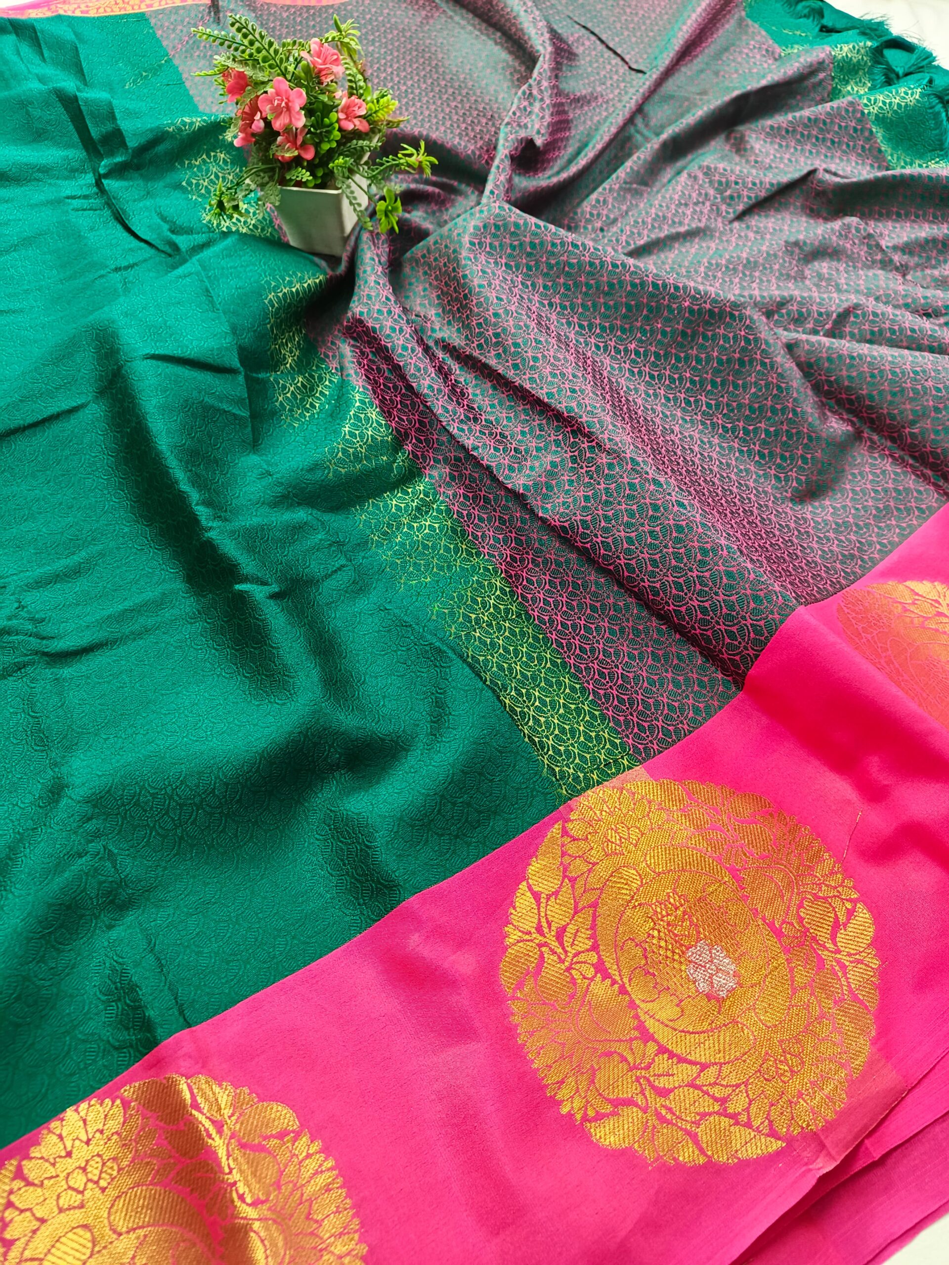 Bottle Green, Ferozi, Gold, Parrot, Pink, Red, Tussar
